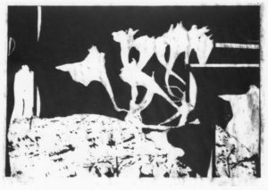 Amaryllis + Wächter: Fassung B, 9.10.2000 – 1.2.2001, Graphit-Prägezeichnung + Acryl, 29,7 x 41,5 cm
